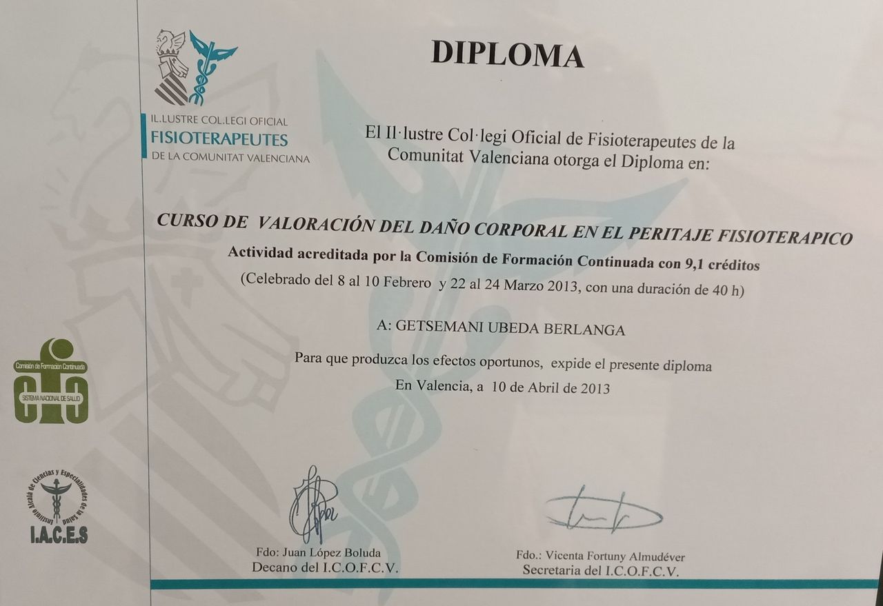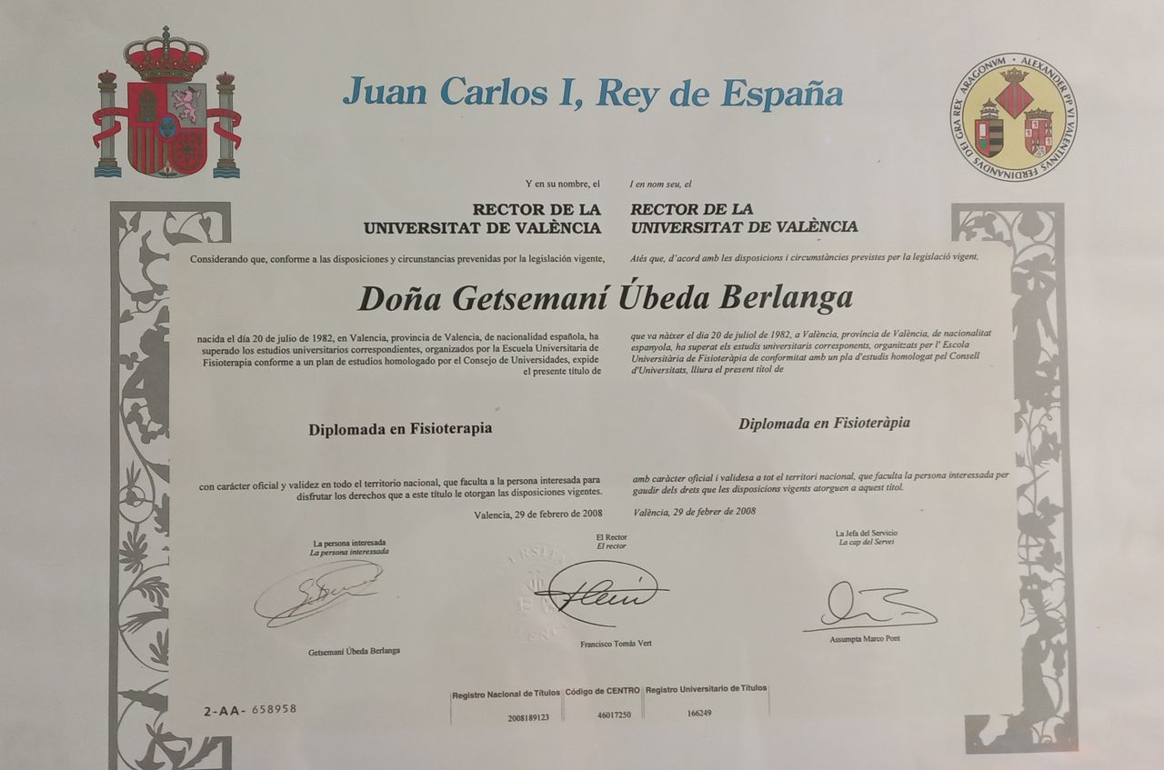 Soy Getsemaní Úbeda, fisioterapeuta responsable de la Clínica Getsemaní Úbeda, un centro especializado en fisioterapia y servicios sanitarios integrales ubicado en Valencia.