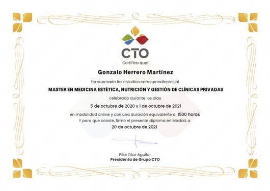 ¿Cuáles son las principales especialidades de Gonzalo Herrero Martínez?Gonzalo Herrero Martínez es médico estético. Te mostramos algunos de los servicios que ofrece gracias a su trayectoria y amplia experiencia: Rellenos faciales, Consulta de valoración de Medicina Estética, Visita de revisión, Tratamientos con Neurotoxina, Mesoterapia.