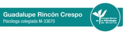 ¿Puedo hacer la visita con Guadalupe Rincón Crespo de forma online, sin tener que desplazarme hasta su consulta?Sí, Guadalupe Rincón Crespo ofrece consulta de forma remota. Solo tienes que seleccionar "consulta online" cuando vayas a reservar cita desde el calendario, y así podrás ver las fechas y horas disponibles.