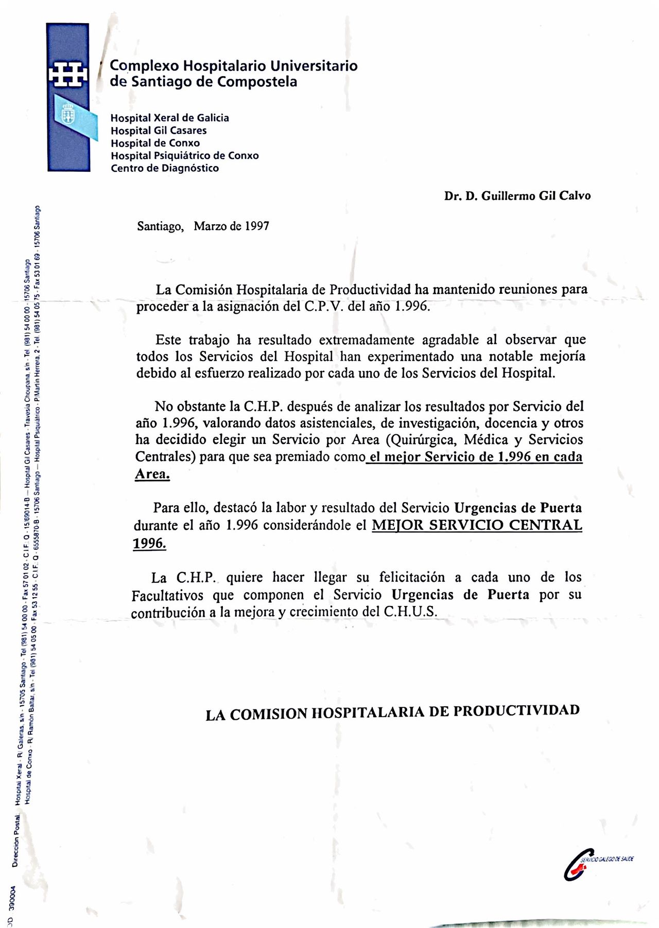 Con una larga experiencia en el Hospital Clínico Universitario De Santiago de Compostela. Urgencias, consulta y docencia.