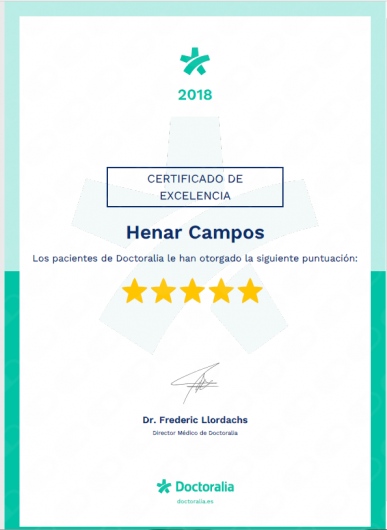 ¿Cómo puedo reservar una cita con Henar Campos?El calendario que muestra Henar Campos en Doctoralia está actualizado en tiempo real, por lo que solo tienes que elegir qué día y hora te va mejor de entre las disponibles. La reserva es gratuita, y además recibes un recordatorio antes de la visita.
