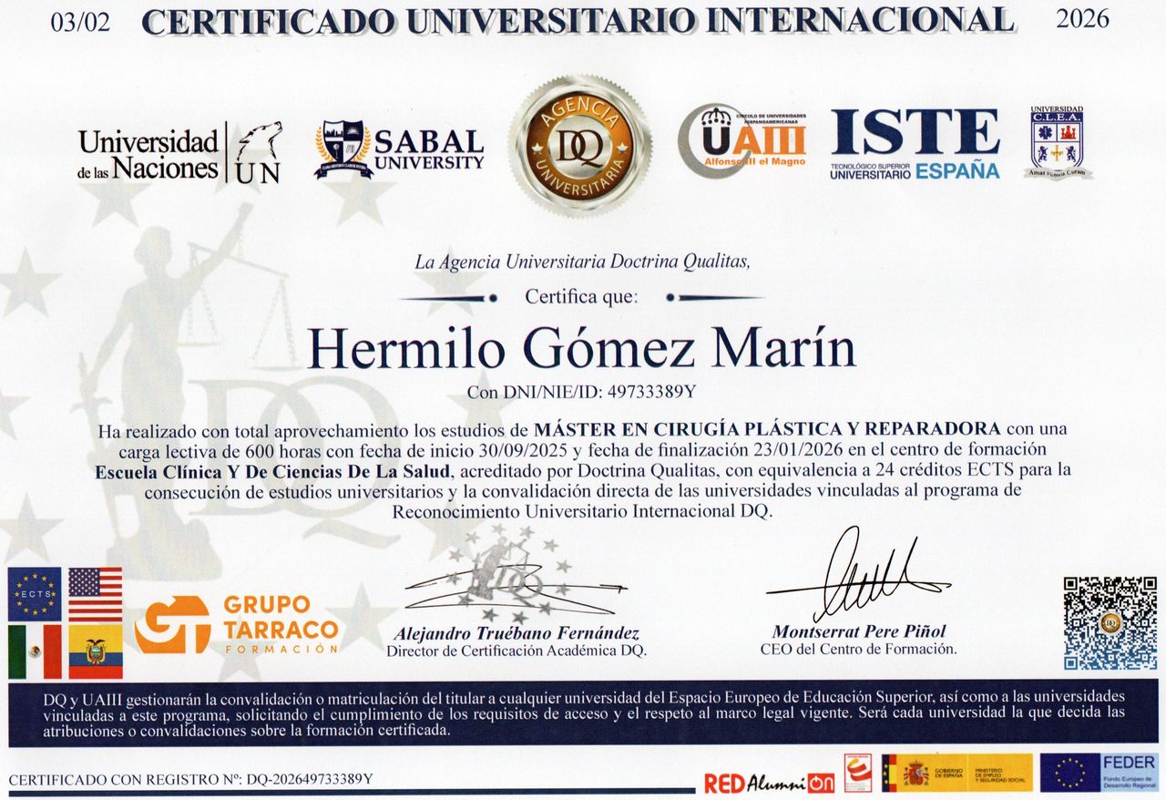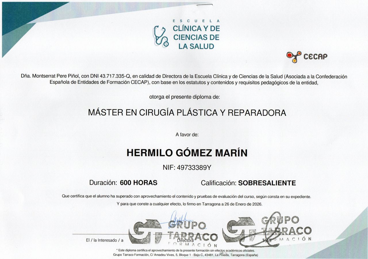 ¿Cuáles son las principales especialidades de Hermilo Gomez Marin?Hermilo Gomez Marin es médico estético. Te mostramos algunos de los servicios que ofrece gracias a su trayectoria y amplia experiencia: Láser de CO2, Biopsia cutánea, subcutánea o mucosa, Rellenos faciales, Infiltraciones con Plasma Rico en Plaquetas (PRP), Esclerosis láser de varices, Peeling, Aumento de labios, Infiltraciones capilares, Visitas sucesivas Medicina Estética y Cirugía Cosmética, Visita domiciliaria Medicina Estética y Cirugía Cosmética.