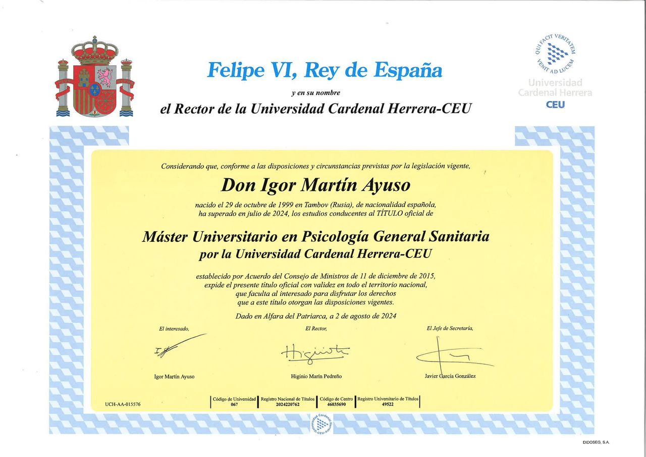 ¿Cuáles son las principales especialidades de Igor Martín Ayuso?Igor Martín Ayuso es psicólogo. Te mostramos algunos de los servicios que ofrece gracias a su trayectoria y amplia experiencia: Consulta online, Tratamiento en adicciones (sesiones online), Tratamiento depresión (sesiones online), Psicología online, Tratamiento en autoestima (sesiones online), Tratamiento en problemas de ansiedad y estrés (sesiones online), Primera visita (sesiones online), Consulta psicológica online, Tratamiento online de problemas de ansiedad, Seguimiento online.