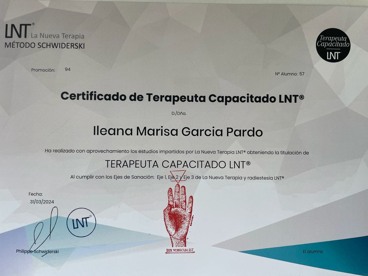 Además, dispongo de herramientas complementarias de regulación energética, como la Terapia de Energía Cuántica LNT (La Nueva Terapia), que pueden integrarse al tratamiento según cada caso y siempre respetando el momento y las necesidades de la persona.