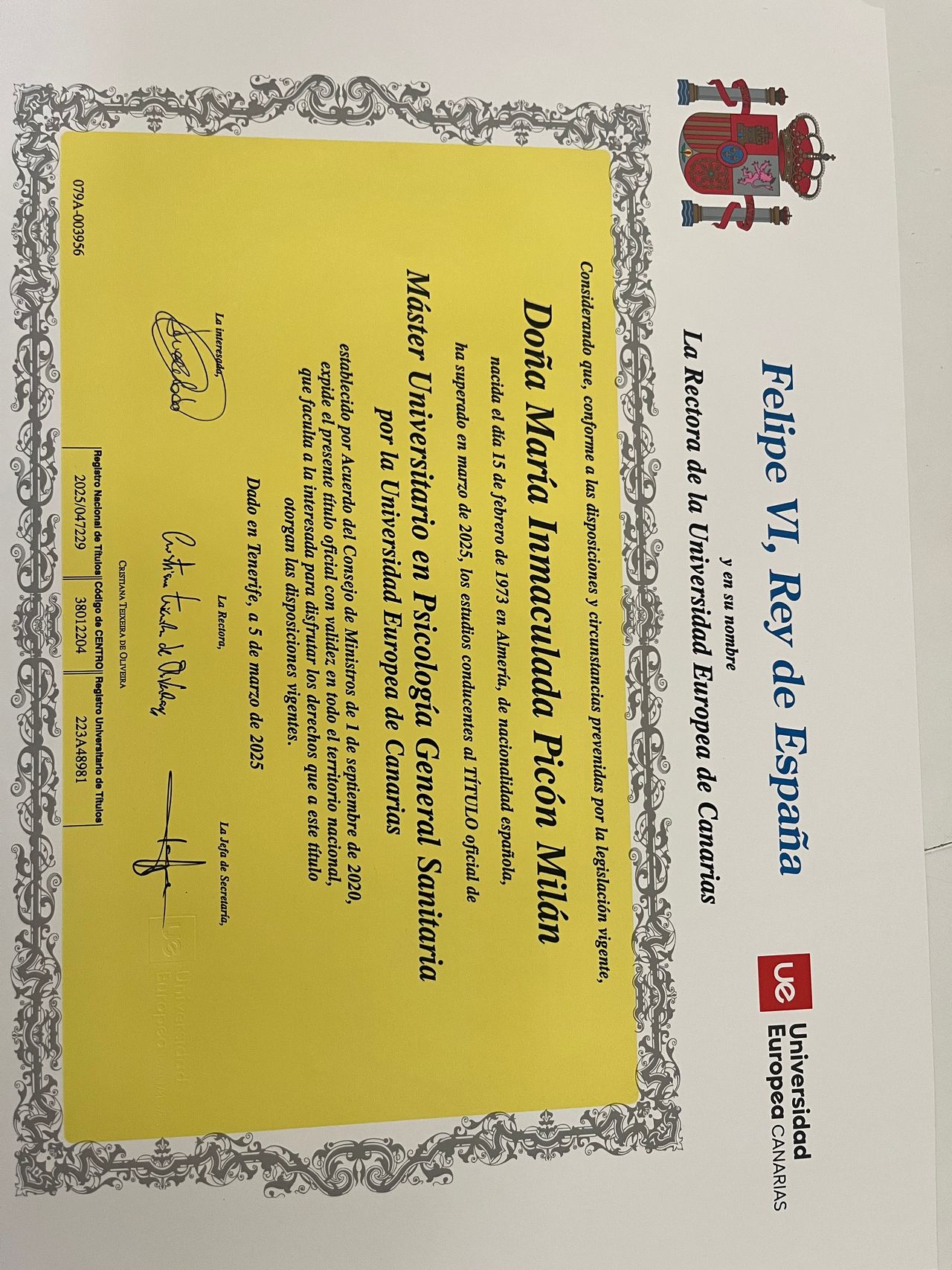 ¿Cuáles son las principales especialidades de Inmaculada Picon Milan?Inmaculada Picon Milan es psicóloga. Te mostramos algunos de los servicios que ofrece gracias a su trayectoria y amplia experiencia: Terapia individual, Terapia familiar, Psicoterapia, Terapia de duelo, Modificación del estilo de vida, Terapia Gestalt, Primera visita Psicología, Psicoterapia individual, Acompañamiento a los hijos en la separación/divorcio, Acompañamiento en el proceso personal.