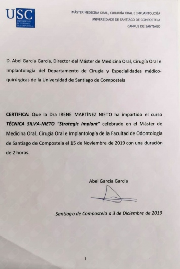 • Colaboradora en el Curso “Implantologia estatégica Técnica Silva-Nieto”.