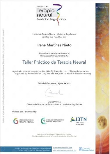 ¿Puedo hacer la visita con Irene Martinez Nieto de forma online, sin tener que desplazarme hasta su consulta?Sí, Irene Martinez Nieto ofrece consulta de forma remota. Solo tienes que seleccionar "consulta online" cuando vayas a reservar cita desde el calendario, y así podrás ver las fechas y horas disponibles.