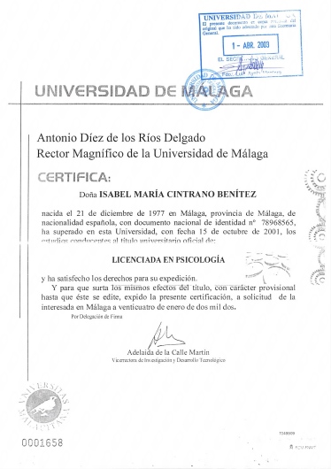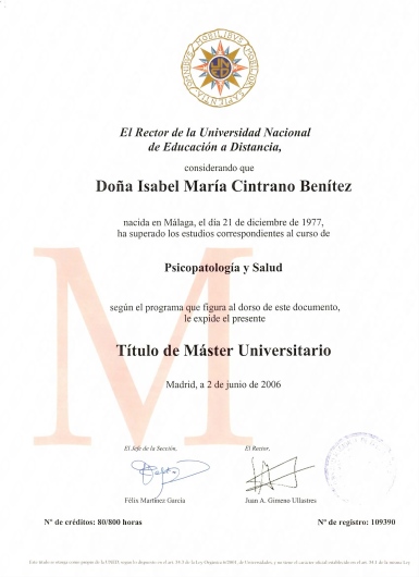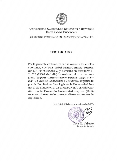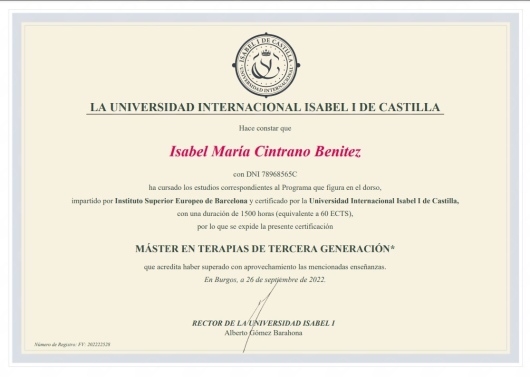 • Isabel María Cintrano Benítez • Visitas sucesivas Psicología •
