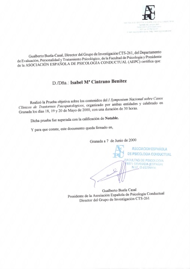 • Isabel María Cintrano Benítez • Primera visita Psicología •