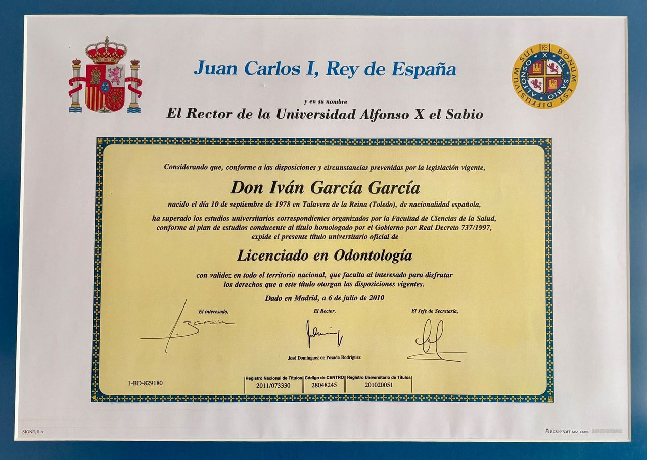 Master en Implantología y Cirugía oral por la Universidad Cardenal Herrera (CEU), Valencia.