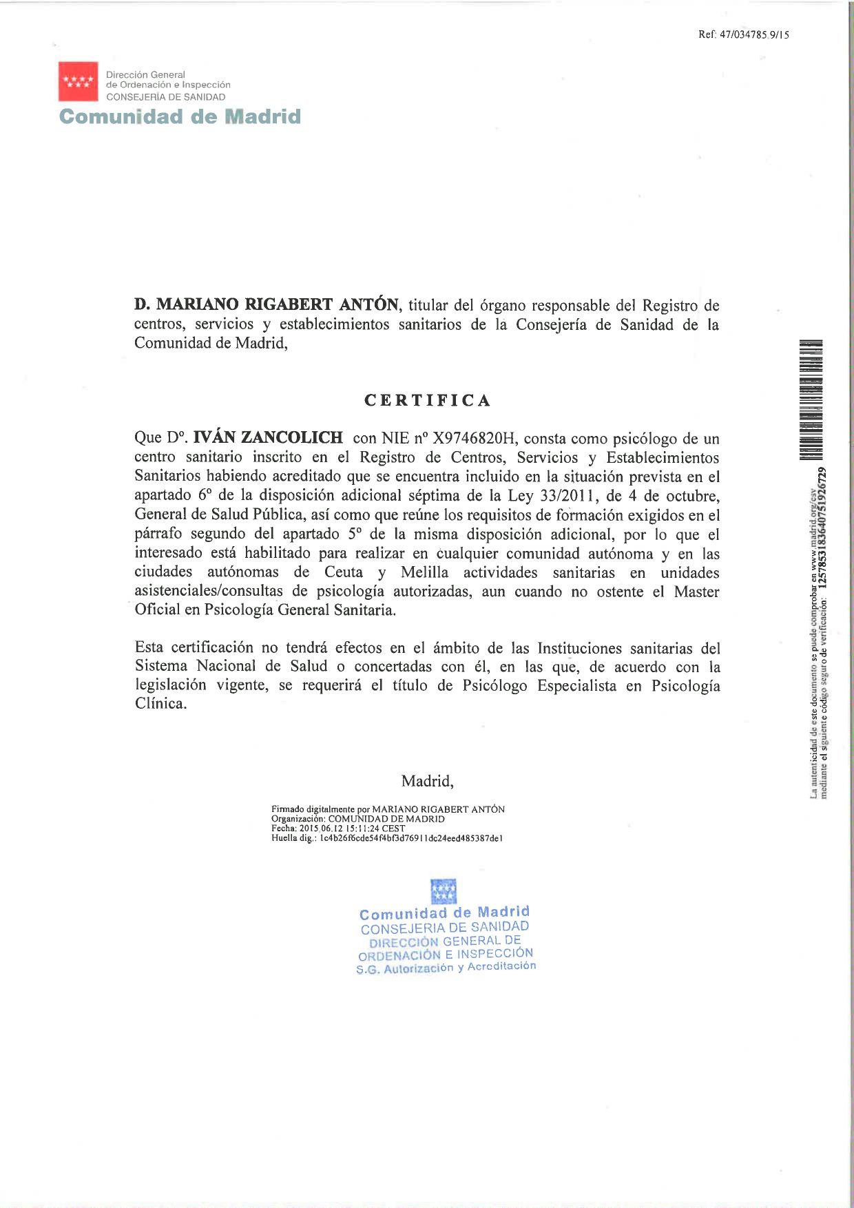 ¿Qué aseguradoras acepta Ivan Zancolich?Ivan Zancolich no acepta aseguradoras, sólo pacientes privados. Te recomendamos que, en caso de duda, te pongas en contacto con el especialista.