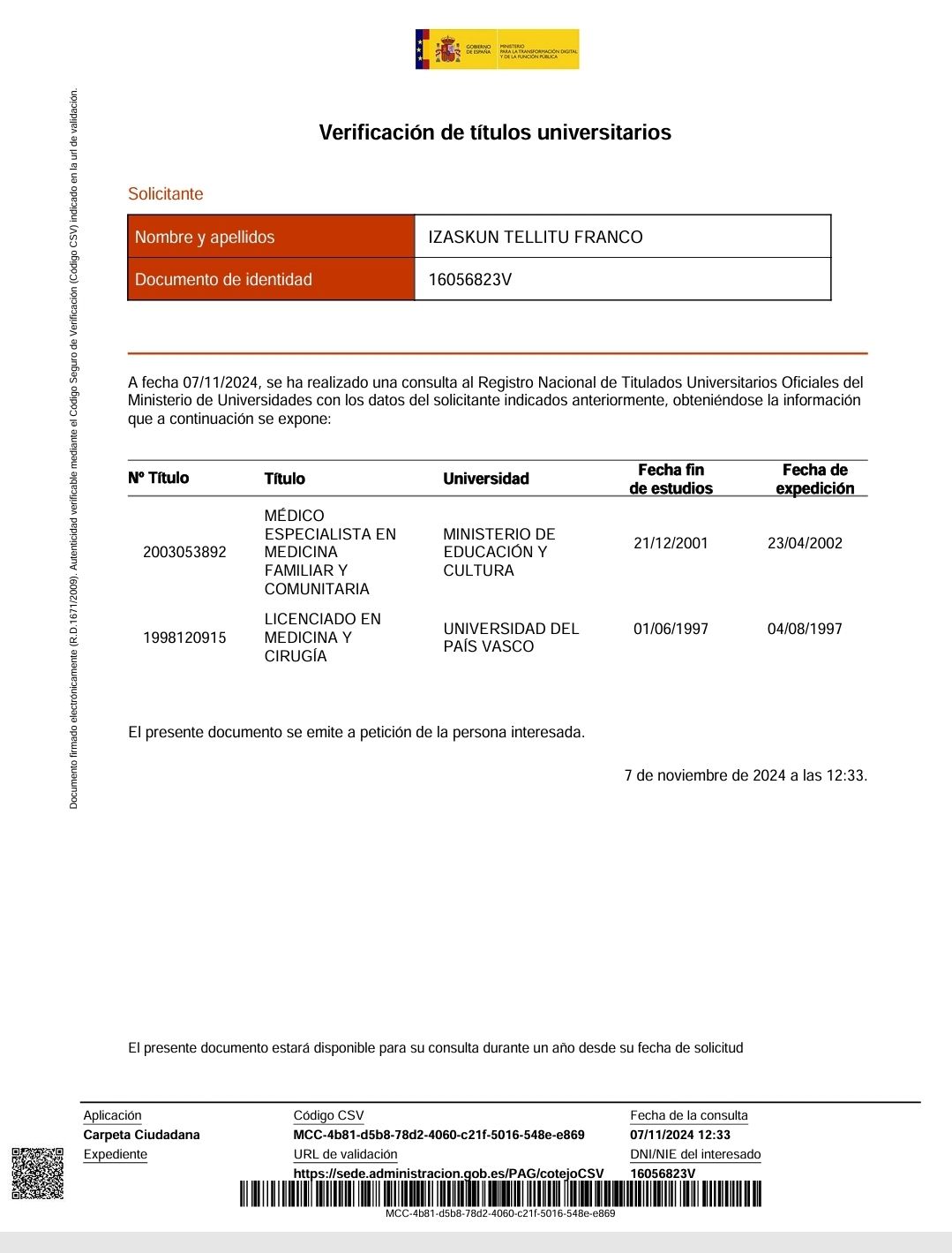 Soy la Dra. Izaskun Tellitu, especialista en Medicina Familiar y Comunitaria con más de 24 años de experiencia en Urgencias y Emergencias, tanto en el ámbito hospitalario como prehospitalario. Trabajo en el Hospital Universitario Sant Joan de Reus y en el helicóptero medicalizado de Tarragona, combinando la asistencia urgente terrestre y aérea. Tenga tambien la suficiencia investigadora de Cardiologia Clinica en la UPV, tras superar con excelente el curso de doctorado .