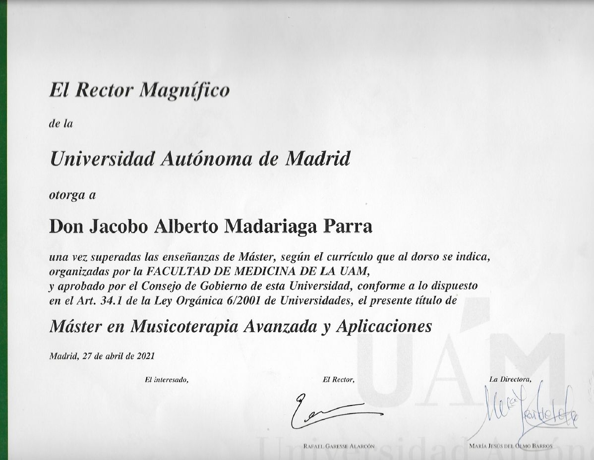 ¿Cuáles son las principales especialidades de Jacobo Madariaga Parra?Jacobo Madariaga Parra es terapeuta complementario. Te mostramos algunos de los servicios que ofrece gracias a su trayectoria y amplia experiencia: Visita Medicina Complementaria y terapias alternativas, Consulta presencial, Musicoterapia, Técnica de respiración, Osteopatía craneo-sacral, Terapia sistémica, Sonoterapia, Constelaciones familiares, Mindfulness, Terapia con Flores de Bach.