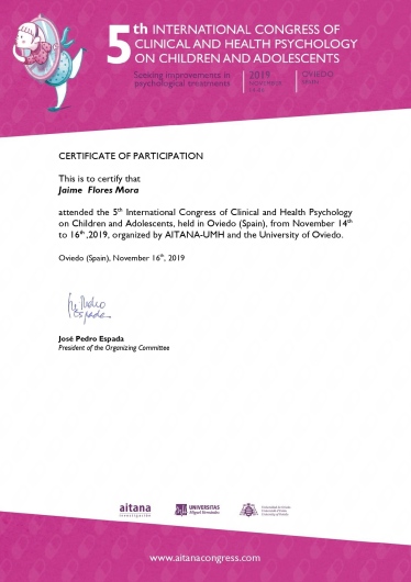 Estamos muy agradecidos y lo recomendamos.• Jaime Flores Mora • Psicoterapia en adolescentes •