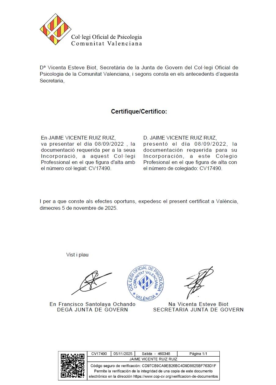 ¿Qué idiomas habla Jaime Ruiz Ruiz?Puedes comunicarte con Jaime Ruiz Ruiz en Inglés, Español, Valenciano.