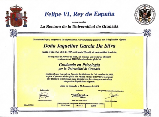 Cuando cursaba el máster, en Brasil, conocí a quien sería mi tutor de tesis, lo que me motivó a hacer la tesis doctoral en Granada, lo que resultó en una experiencia no solo a nivel profesional, como también personal. Una vez aquí, identificada con la cultura y muy a gusto en la ciudad, decidí empezar la homologación de mi título para poder ejercer y quedarme. Tengo la habilitación en Psicología General Sanitaria (UOC).