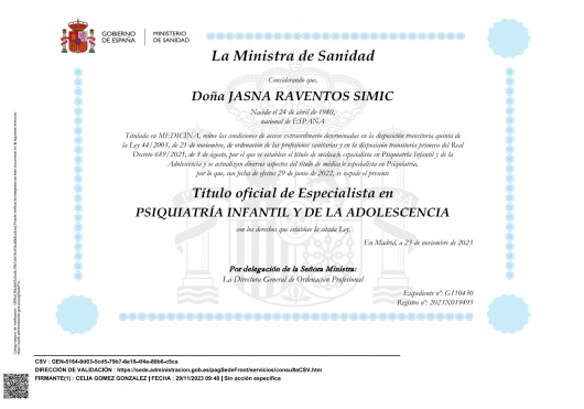 Psiquiatra especialista en Infancia y Adolescencia.