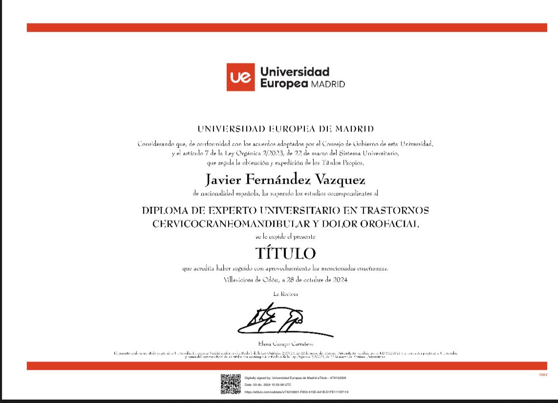Fisioterapeuta especializado en disfunciones del ATM, reeducación vestibular y dolor crónico