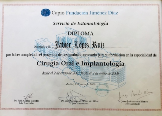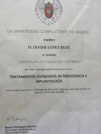 ¿Cuáles son las principales especialidades de Javier López Ruiz?Javier López Ruiz es dentista. Te mostramos algunos de los servicios que ofrece gracias a su trayectoria y amplia experiencia: Primera visita Odontología, Carillas de porcelana, Blanqueamiento dental, Curetaje dental, Empaste dental, Cirugía oral, Férula de descarga, Gingivectomía, Implantes dentales, Ortodoncia Invisalign.