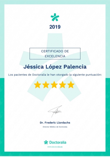 ¿Qué opinan los pacientes de Jéssica López Palencia?Un total de 189 pacientes han querido dejar una opinión sincera y real sobre Jéssica López Palencia, otorgándole además una valoración media de 5 estrellas (sobre un máximo de 5).