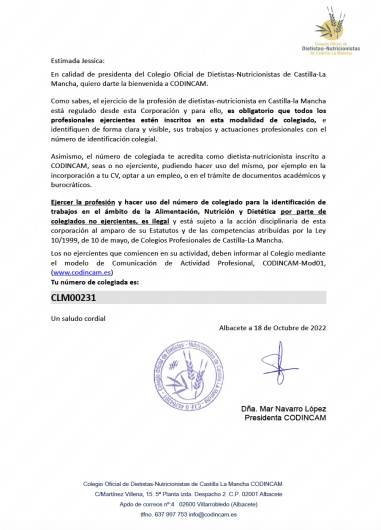 Núm. Colegiado: CLM00231