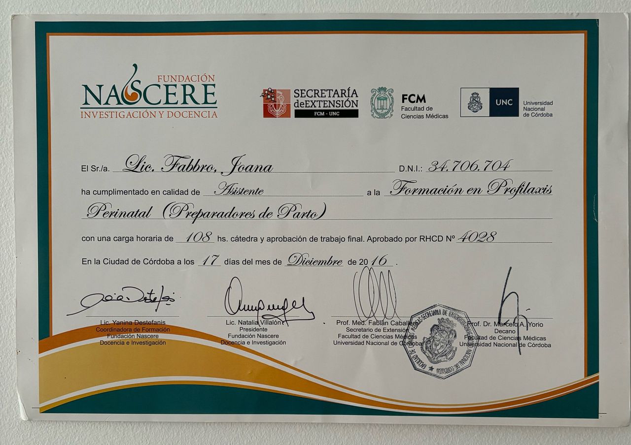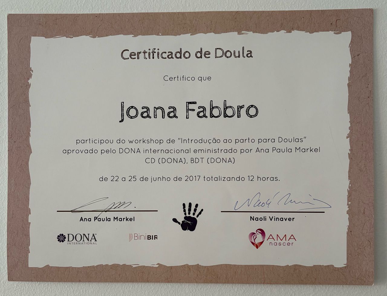 Joana es una profesional maravillosa, que te hace sentir acogida; es sensible, muy amable y cuidadosa. Siempre orienta de una manera muy respetuosa, compartiendo todo su conocimiento con mucha sabiduría y una sonrisa llena de calidez Tuve la experiencia de estar acompañada por ella en el preparto y en el parto, y fue increíble poder contar con su delicadeza y su paz en un momento tan especial.