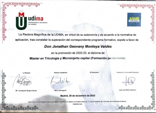 Su formación como especialista en medicina interna aporta una visión global y rigurosa a cada caso de caída capilar, permitiéndole abordar las causas desde el origen. Con experiencia en trasplante capilar y terapias regenerativas, Jonathan combina precisión técnica y criterio médico para ofrecer soluciones capilares duraderas, naturales y adaptadas a cada paciente.