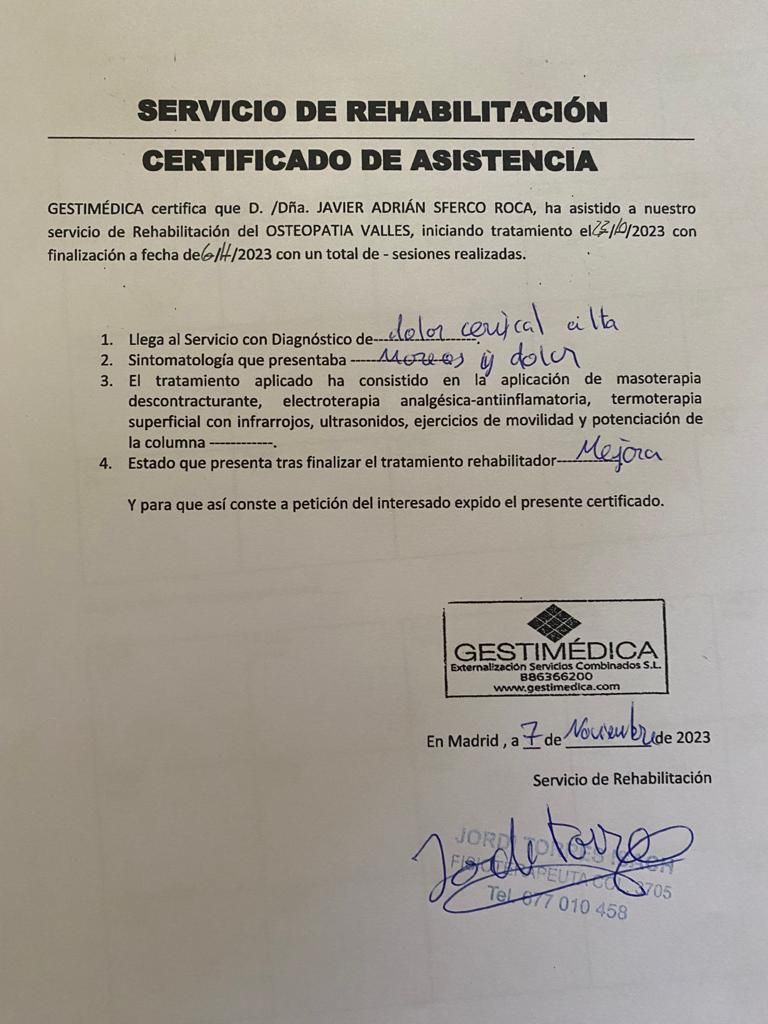 El tratamiento fue óptimo y un aspecto muy positivo fue detectar los aspectos que debía reforzar de mi cuerpo a través de diferentes ejercicios y que debía hacerlo para evitar una serie de problemas fisiológicos que me explico detenidamente.