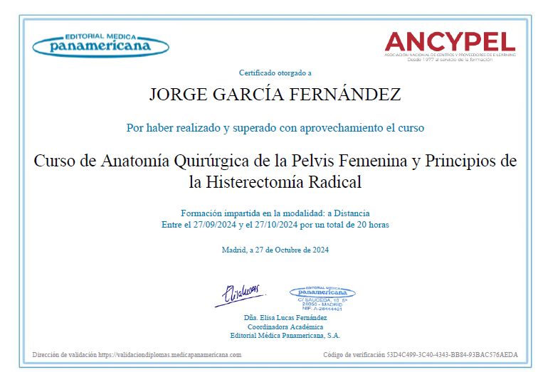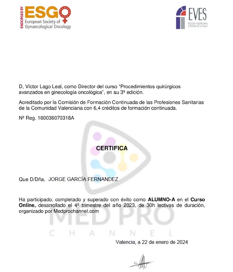 MD, Specialist in Obstetrics and Gynecology with subspecialization in Gynecologic Oncology and Gynecolocical Surgery and Minnimal Access surgery.