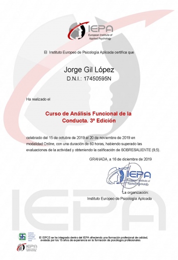 ¿Cuáles son las principales especialidades de Jorge Gil López?Jorge Gil López es psicólogo, psicólogo infantil, psicopedagogo. Te mostramos algunos de los servicios que ofrece gracias a su trayectoria y amplia experiencia: Primera visita Psicología, Psicología adultos, Psicología infanto- juvenil, Consulta telefónica informativa (15 minutos), Evaluación neuropsicológica, Informe de estado/seguimiento de psicología, Evaluación psicopedagógica completa, Consulta online.