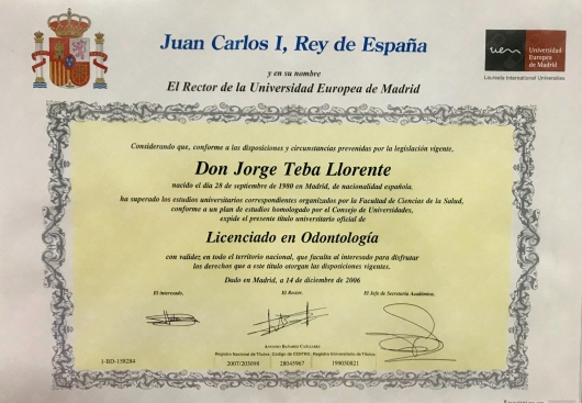 ¿Cuáles son las principales especialidades de Jorge Teba Llorente?Jorge Teba Llorente es dentista, dentista infantil. Te mostramos algunos de los servicios que ofrece gracias a su trayectoria y amplia experiencia: Primera visita Odontología, Carillas de composite, Limpieza dental, Empaste dental, Endodoncia, Reconstrucción dental, Coronas Metal Porcelana, Férula de descarga, Ortodoncia, Implantes dentales.