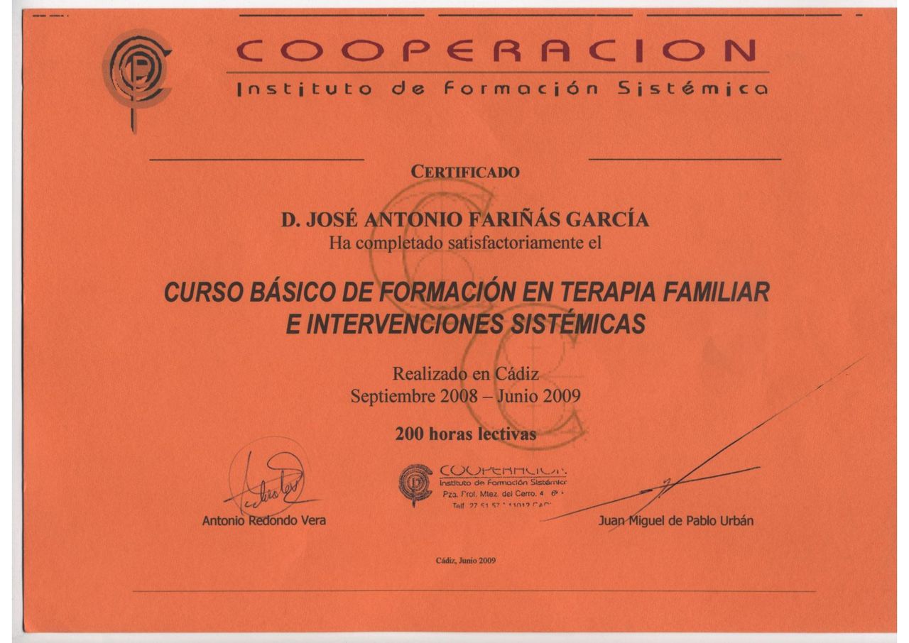 ¿Cuáles son las principales especialidades de José Antonio Fariñas García?José Antonio Fariñas García es psicólogo. Te mostramos algunos de los servicios que ofrece gracias a su trayectoria y amplia experiencia: Primera visita Psicología, Técnicas y estrategias de autoestima, Consulta de Psicología Sanitaria, Terapia de pareja, Terapia individual, Estrategias terapéuticas en comunicación y habilidades sociales, Diagnóstico y tratamiento para trastornos de ansiedad, Terapia de duelo, Relajación, Modificación del estilo de vida.