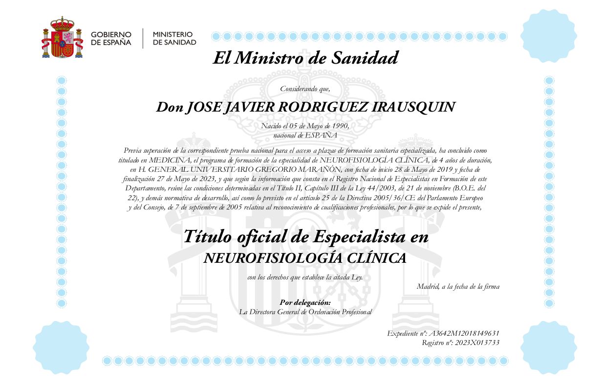 ¿Cuáles son las principales especialidades de José Javier Rodríguez Irausqui?José Javier Rodríguez Irausqui es neurofisiólogo clínico. Te mostramos algunos de los servicios que ofrece gracias a su trayectoria y amplia experiencia: Primera visita Neurofisiología Clínica, Electromiografía de superficie (EMG), Electroencefalograma con privación del sueño, Potenciales evocados somestésicos, Potenciales evocados visuales, Potenciales evocados auditivos, Potenciales evocados cognitivos, Electroencefalograma.