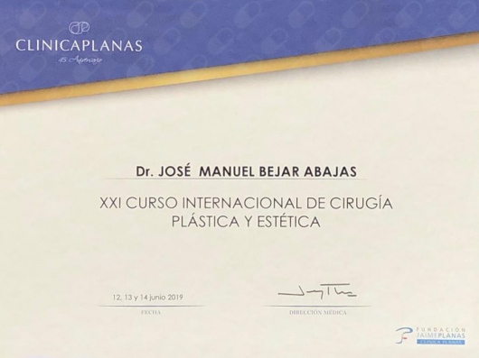 Titulo de Médico Especialista en Cirugía Plástica, Estética y Reparadora por la Universidad del País Vasco en el año 1985.