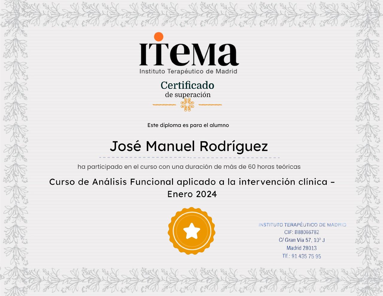 Tras asistir a vari@s psicólog@s para tratar mi problema de TDAH por fin conocí a José Manuel Rodríguez . Su calidad humana es tan grande como su profesionalidad. Desde la primera consulta me transmitió cercanía, seguridad y confianza , y con sus técnicas profesionales ha conseguido que yo mejore mi calidad de vida y la de mi familia. Muchas gracias José Manuel. Un abrazo