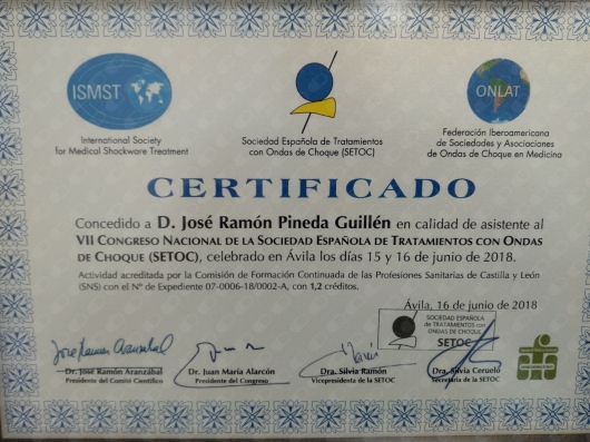 Soy José Ramón Pineda Guillén y nací en Sevilla en 1984. Me especialicé en Medicina Física y Rehabilitación en el año 2015 y actualmente estoy ejerciendo esta bonita profesión en clínica Dr. Pineda (Tomares). He sido médico en 3 equipos de fútbol profesional, la UD Almería (Temporadas 2018/19 y 2019-2020), el Sevilla FC (Temporada 2022/2023) y el Betis Deportivo (actualidad). Mi función como médico rehabilitador es prevenir, diagnosticar y tratar las lesiones del sistema músculo - esquelético. Durante mi formación como médico especialista en Rehabilitación he adquirido los conocimientos específicos en exploración física, ecografía diagnóstica y como guía terapéutica, así como a dirigir a un equipo multidisciplinar. Fui fundador y director de Clínica Altamira en Almería desde 2018 a 2021, un centro especializado en rehabilitación deportiva compuesto por médico rehabilitador, fisioterapeutas, readaptadores físicos, podólogo y psicólogo. La especialidad en Medicina Física y Rehabilitación contempla un amplio abanico de medidas conservadoras para abordar la mayoría de las afecciones del aparato locomotor. Especializado en infiltraciones ecoguiadas (ácido hialurónico, PRP, etc), lavado cálcico ecoguiado o barbotaje, hidrodilatación en capsulitis adhesiva, bloqueo nervioso ecoguiado o radiofrecuencia entre otras. Estoy muy ilusionado de poder atender a mis pacientes según mi filosofía de trabajo, en mi propia clínica, dedicándoles el tiempo y los medios que considero oportunos según cada caso.