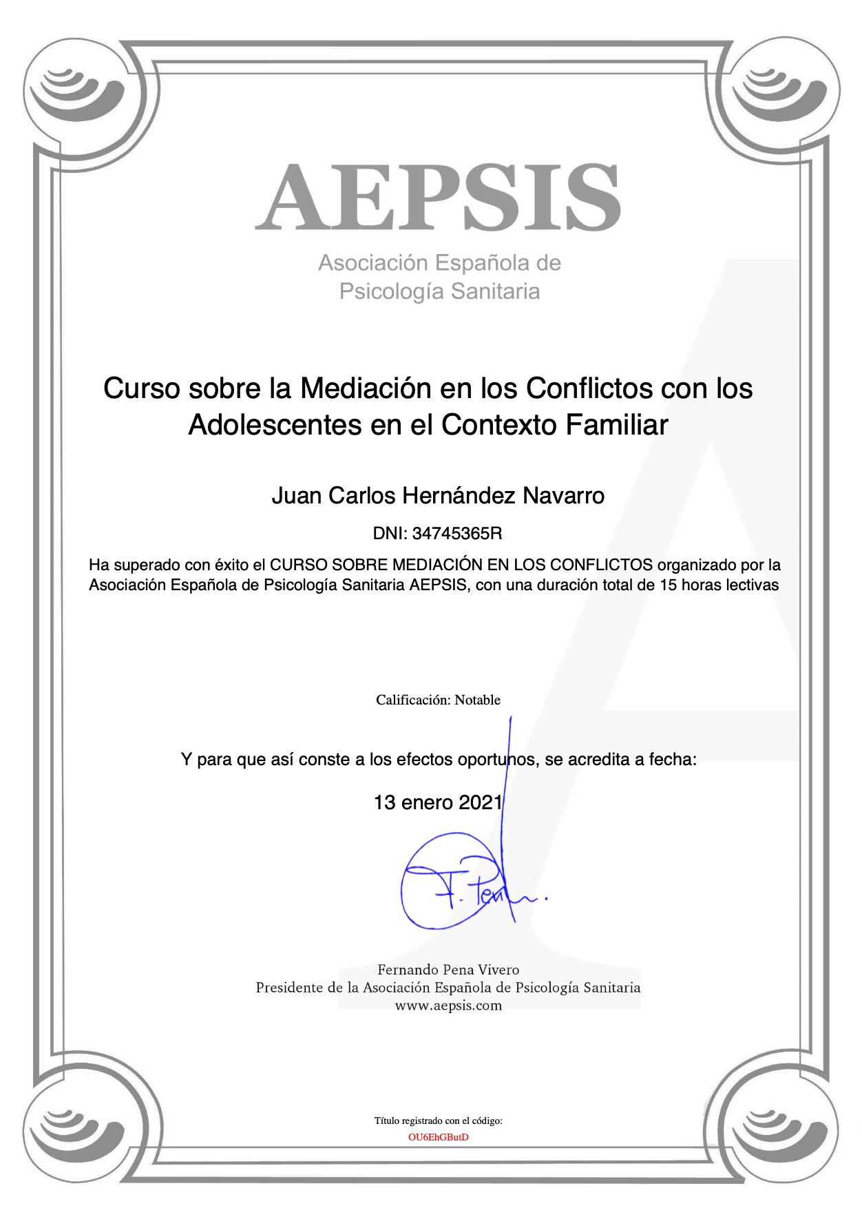 “Es muy satisfactorio saber que el proceso terapéutico ha funcionado y que te hayas sentido acompañado en todo momento. Muchas gracias.”