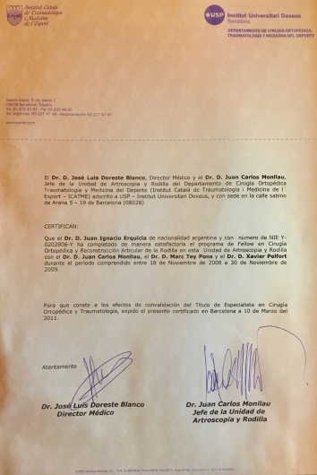 Una vez llegado a España se formó en ICATME, en la escuela del Dr. Prof. Juan Carlos Monllau, con quien compartió 13 años de trabajo, llevando a cabo una importante actividad asistencial, docente e investigadora.