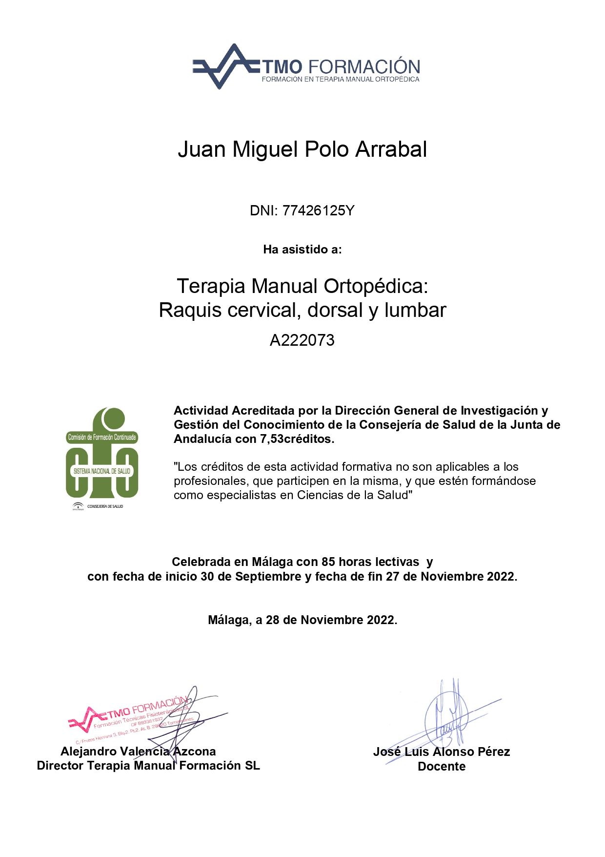 Mi nombre es Juan Miguel Polo y soy fisioterapeuta especializado en Terapia Manual Ortopédica.