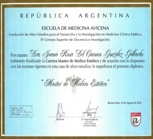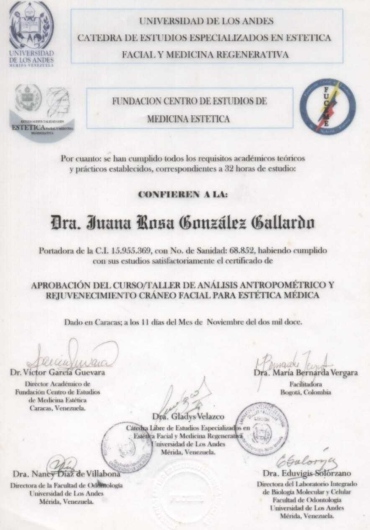 Especialista en Medicina Estética y Anti Aging.Experta en Rejuvenecimiento facial.Experiencia desde el 2007.