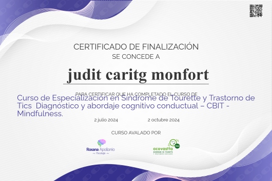 Tratamiento del síndrome de Tourette o trastorno por tics, con terapia CBIT, RH, EPR.