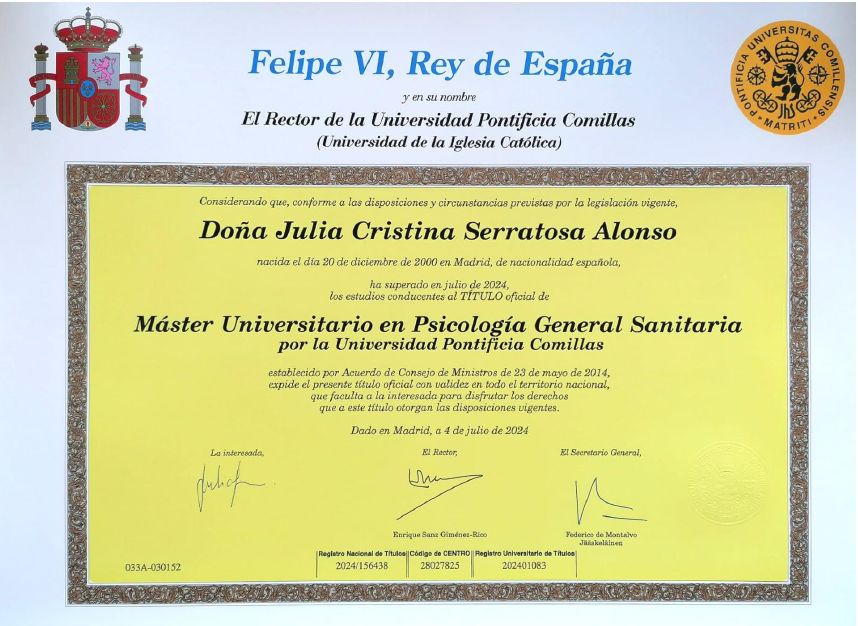 ¿Qué idiomas habla Julia Serratosa Alonso?Puedes comunicarte con Julia Serratosa Alonso en Español, Inglés.