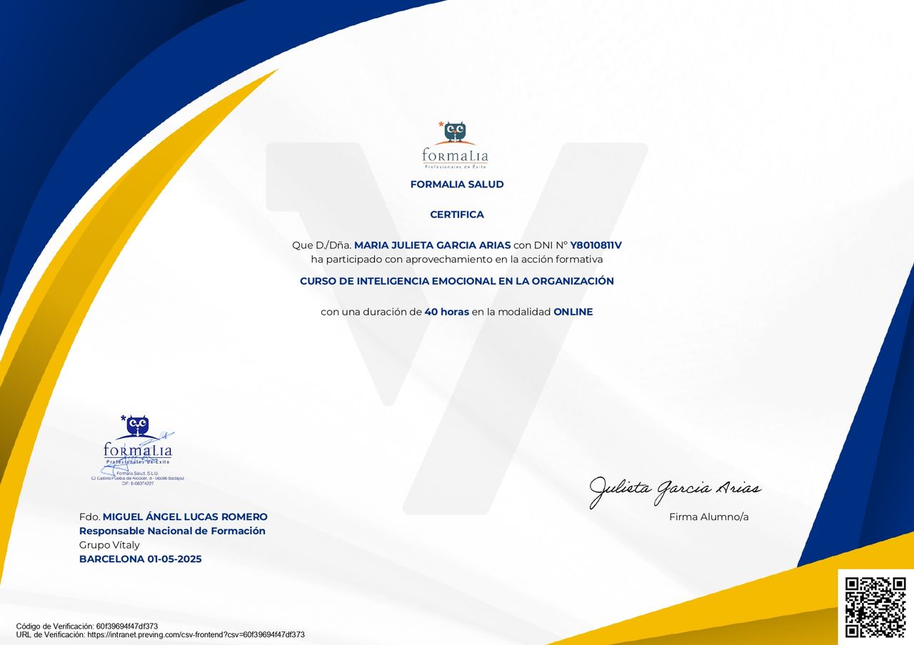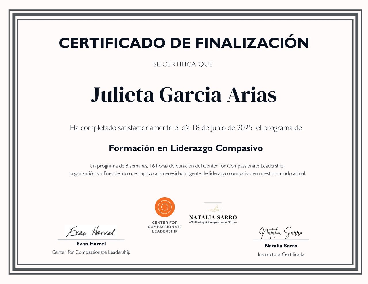 Me alegro mucho por el camino recorrido juntas y tus logros. Gracias por confiar en este proceso.