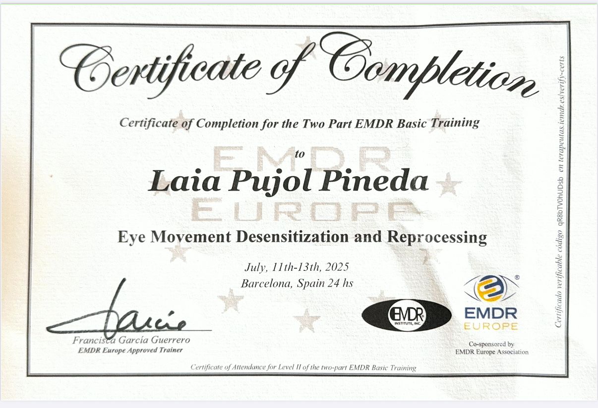 Hola, soy Laia, psicóloga general sanitaria con especialización en EMDR, Mindfulness y TCC. Mi enfoque se centra en brindar un apoyo cálido y comprensivo a mis pacientes, combinando mi pasión por la psicología con técnicas avanzadas para promover el bienestar mental. Además, soy una persona alegre y extrovertida, con un amor profundo por los animales, la música, la danza y la naturaleza. Durante las sesiones, me esfuerzo por crear un ambiente seguro y libre de juicio, donde los pacientes se sientan cómodos para expresar cualquier preocupación. Utilizo una escucha activa, empatía y calidez para asegurar que cada persona se sienta comprendida y apoyada. Poseo una amplia formación y experiencia trabajando con adultos y adolescentes, tanto en entornos públicos como privados. Esto me ha permitido desarrollar un enfoque terapéutico integral y personalizado, adaptado a las necesidades específicas de cada individuo. Mi objetivo es guiar a mis pacientes hacia cambios significativos que mejoren su salud y calidad de vida.