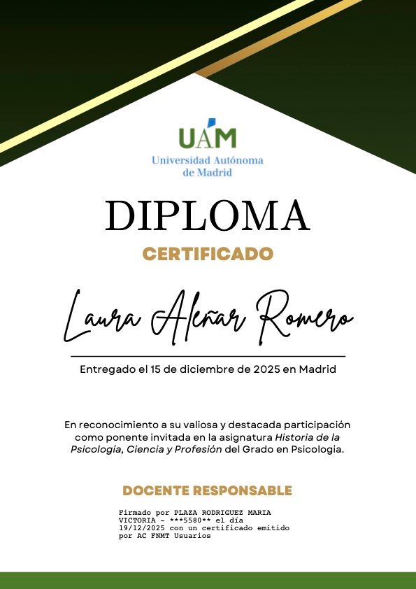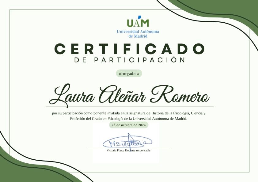 ¡Hola! mi nombre es Laura y soy psicóloga sanitaria (M-39952). Cuento con varios años de experiencia trabajando como psicóloga clínica con niños, adolescentes y adultos. También me dedico a la impartición de talleres, a la elaboración de materiales de gran rigor científico para aplicar dentro y fuera de la consulta y a la divulgación de contenido en redes sociales. También he escrito mi primer libro ("Entiende tu conducta y emociones. Consejos prácticos para el día a día") que publiqué en diciembre de 2023 y puedes escucharme en mi Podcast ("Entiende tu conducta y emociones Podcast") en YouTube y Spotify).