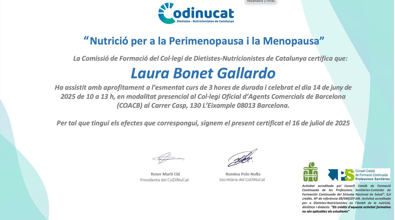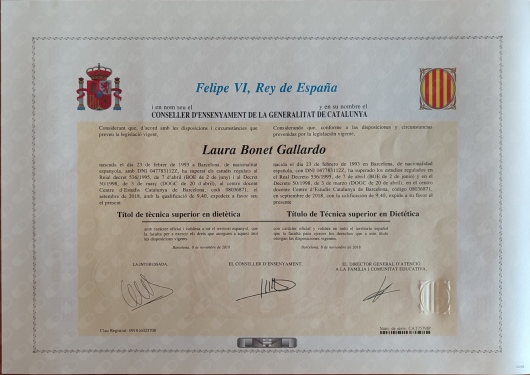 2016-2018. Grado Superior en Dietética (Centre d’Estudis Catalunya)