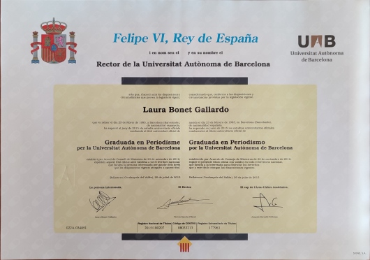 2011-2015. Grado en Periodismo (Universidad Autónoma de Barcelona)