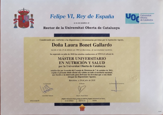2015-2017. Máster en Nutrición y Salud (Universitat Oberta de Catalunya)