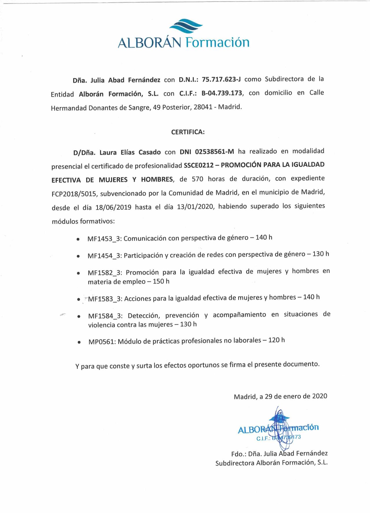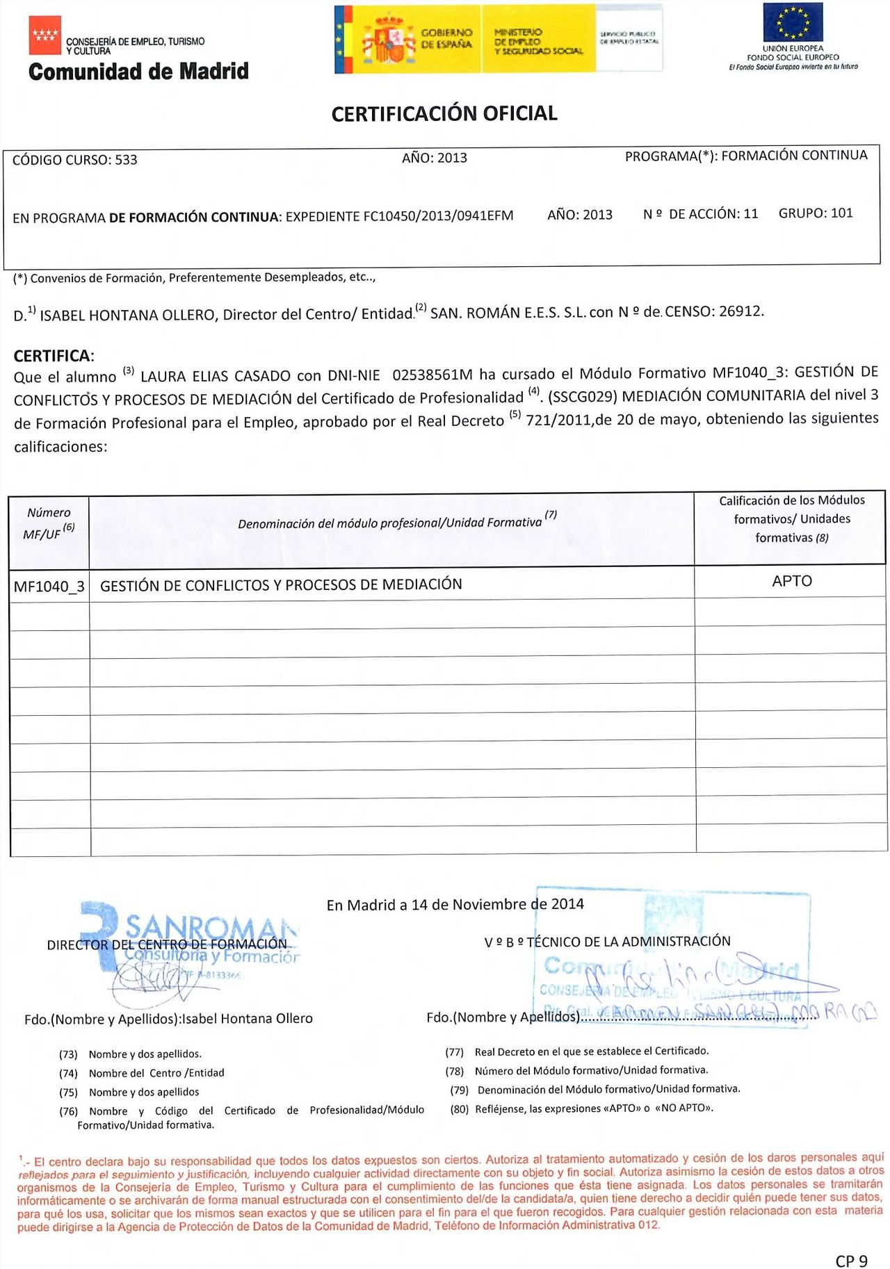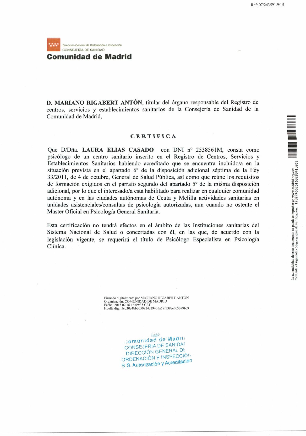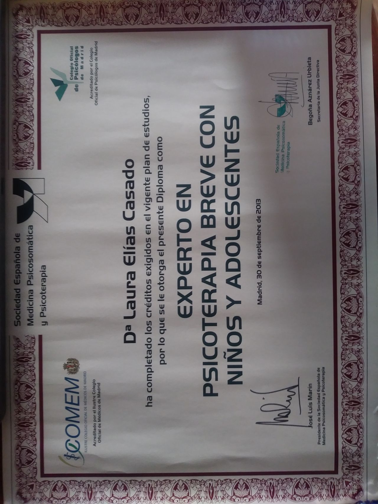 Acreditada por la Sociedad Española de EMDR (Nivel 1).2015