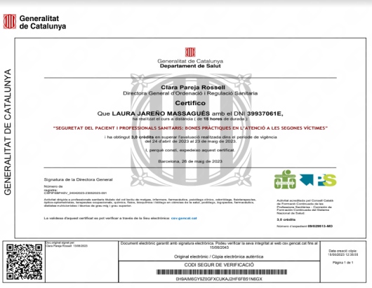 El tracta de la Laura cap als meus fills i a mi, és molt bo. Ens explica, té pasciència i en tot moment té una paraula bonica per tranquilitzar-nos. Moltes gràcies